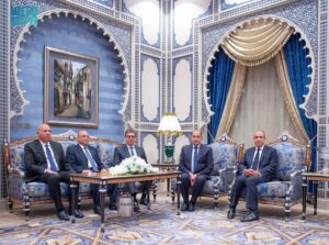 فيما حضر من الجانب المصري معالي وزير الخارجية والتعاون الدولي والمصريين بالخارج الدكتور بدر عبدالعاطي، ورئيس ديوان رئيس الجمهورية اللواء أحمد علي، ورئيس المخابرات العامة اللواء حسن رشاد، ومدير مكتب رئيس الجمهورية السيد عمر مروان، وسفير مصر لدى المملكة إيهاب أبوسريع، والمتحدث الرسمي باسم رئاسة الجمهورية السفير محمد الشناوي.